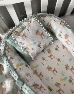 Jaju Baby – Babynestje En Hoofdkussen – Organische Katoen – Antibacterieel Babynestje – Anti-Allergisch Babynestje – Groen En Gazelle Patroon – 74 X 40 Cm