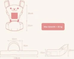 Gebruik: 0-36 maanden, max aanbevolen gewicht 20kg, het afneembare heupzitje biedt ongelooflijke veelzijdigheid tijdens de groei van je baby