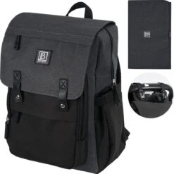 Brisby Slijtvaste Luiertas – Verzorgingstas – Two Tone Zwart En Donkergrijs – Inclusief Verschoonmatje – Isoleervakken – Met Geïntegreerde Kinderwagen Haken