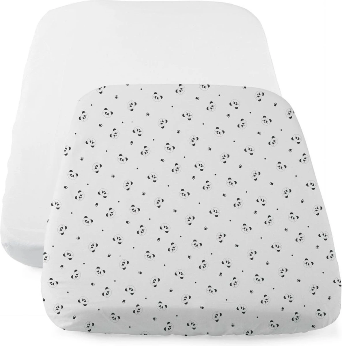 2x Hoeslakentjes wit & pandabeerpatroon