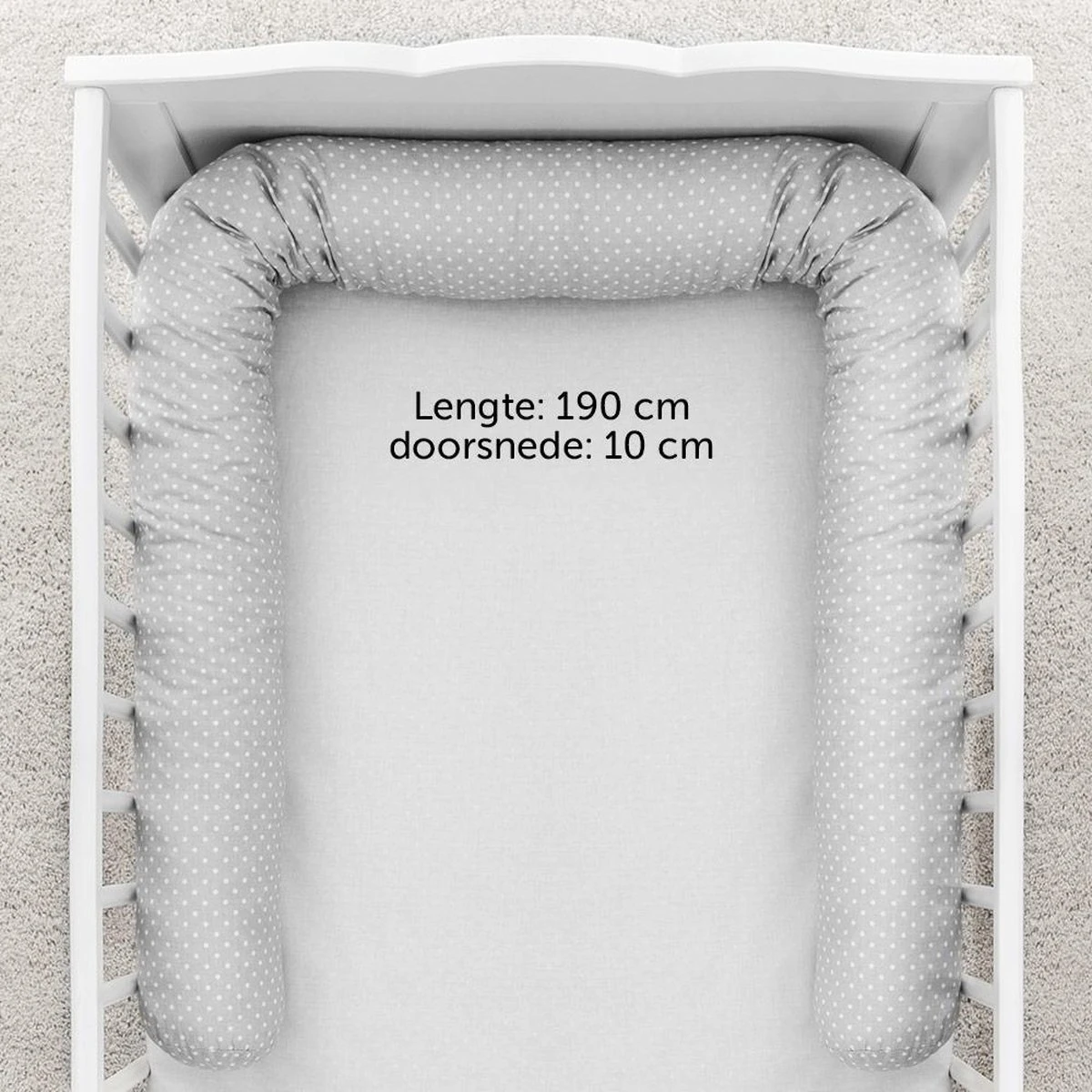 - Universeel – Met een lengte van 190 cm past de bedomranding zich zowel aan het wiegje als aan het ledikantje aan. Ook te gebruiken in een aanschuifwieg, campingbedje, kinderbed, aanschuifbed, cosleeper etc.