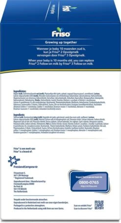 • Friso 3 opvolgmelk is niet geschikt voor kindjes jonger dan 10 maanden.