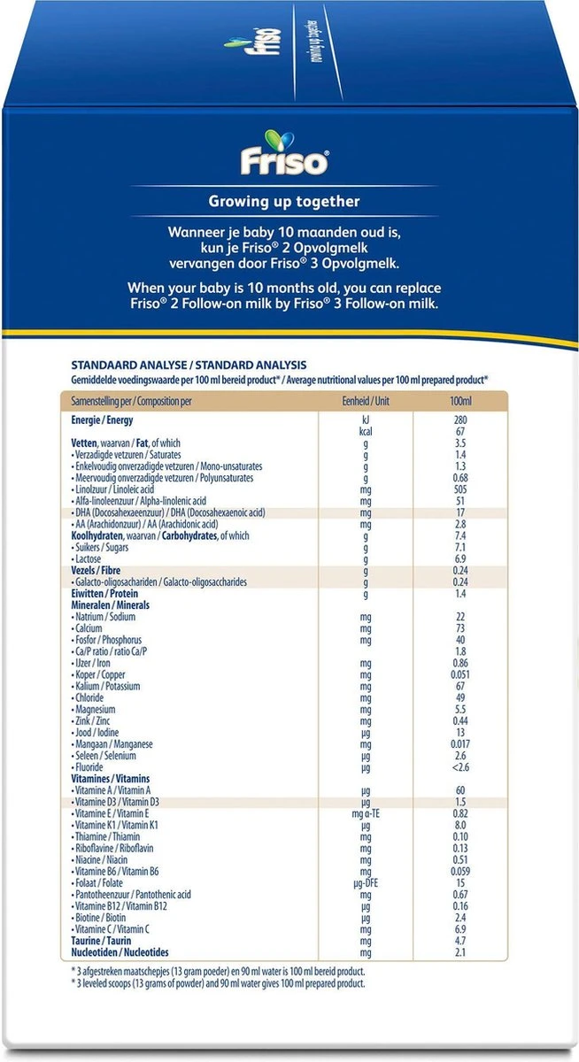 Deze flesvoeding wordt geproduceerd in Nederland. Friso is een merk van FrieslandCampina, een van de grootste zuivel coöperaties ter wereld met 150 jaar ervaring. Friso is wereldwijd beschikbaar in meer dan 20 landen.