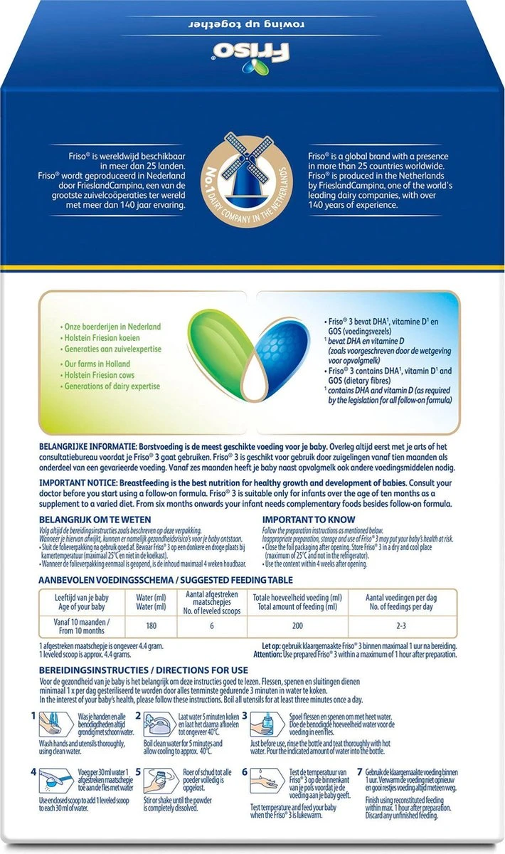 • Friso 3 opvolgmelk is geschikt als onderdeel van een gevarieerde voeding.