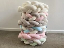 Voor jouw pasgeborene kunnen de gevlochten bedbumpers zowel als mooie decoratie in het bedje of de box gebruikt worden, maar ook om te voorkomen dat de baby zich kan bezeren aan de zijkant/spijlen van het bed of de box. De gevlochten omranders kunnen ook gebruikt worden als verkleinkussen in het bedje of de wandelwagen, of als babynestje op een stoel of de bank. Wij horen ook veel terug dat de omrander nog een handige functie heeft: de speentjes worden niet meer zo gemakkelijk uit de box of het bedje gegooid, en de beentjes/armpjes komen niet meer vast te zitten!