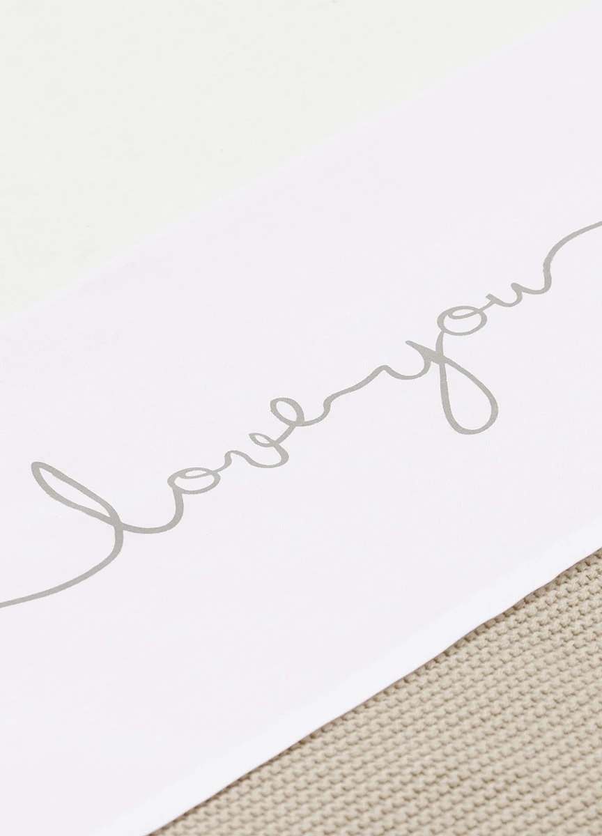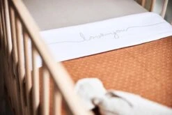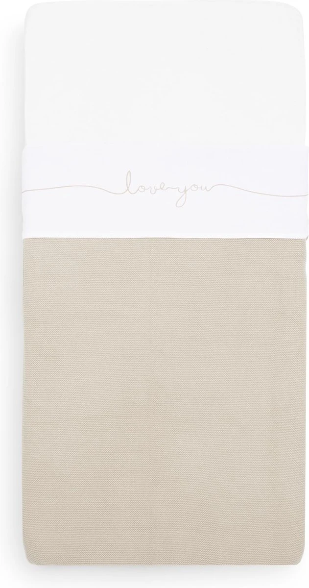 Met een wit lakentje kun je het bedje van jouw baby veilig, kort en strak opmaken. Door de zijkanten van het lakentje onder het matrasje te stoppen, slaapt jouw kleintje niet alleen veilig, maar heeft het ook een geborgen gevoel. Dit lieve lakentje met de tekst ‘love you’ past perfect bij de dekens uit het Basic knit thema en het Bliss knit thema van Jollein.