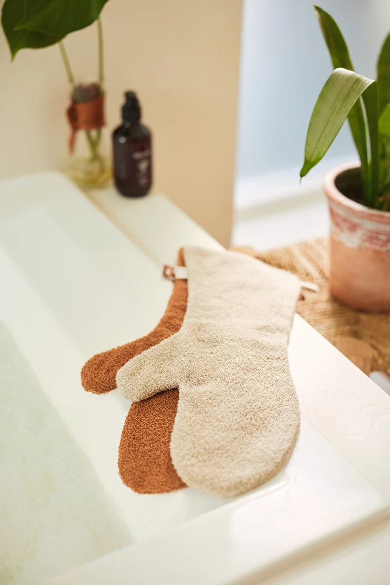 Verkrijgbaar in zes trendy kleuren. Shop de badstof washand in roze, caramel, nougat, grijs, groen en blauw
