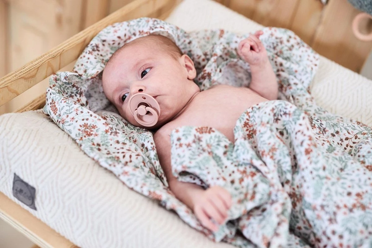 Met deze groot formaat gebloemde hydrofiele doek heb je een multifunctionele doek in huis en de print geeft het een persoonlijk tintje. Deze multidoek wordt ook wel een swaddle genoemd. Je kunt het gebruiken als inbakerdoek zodat je pasgeboren baby zich veilig en geborgen voelt tijdens het slapen. Ook ideaal als handdoek, want het kleinere formaat hydrofiel doek is vaak net te klein om je baby goed mee af te dekken na het badje. De multidoek sla je gemakkelijk om je baby heen zodra je het uit het badje haalt. Daarmee voorkom je dat je baby koud wordt. Tegelijkertijd neemt het hydrofiele katoen veel vocht op wat het afdrogen van je baby versnelt en je baby warm houdt. De doek is ook handig om je baby op te verschonen, op het aankleedkussen of op de bank.