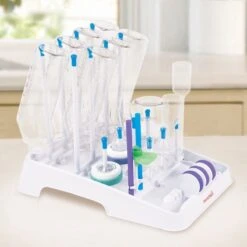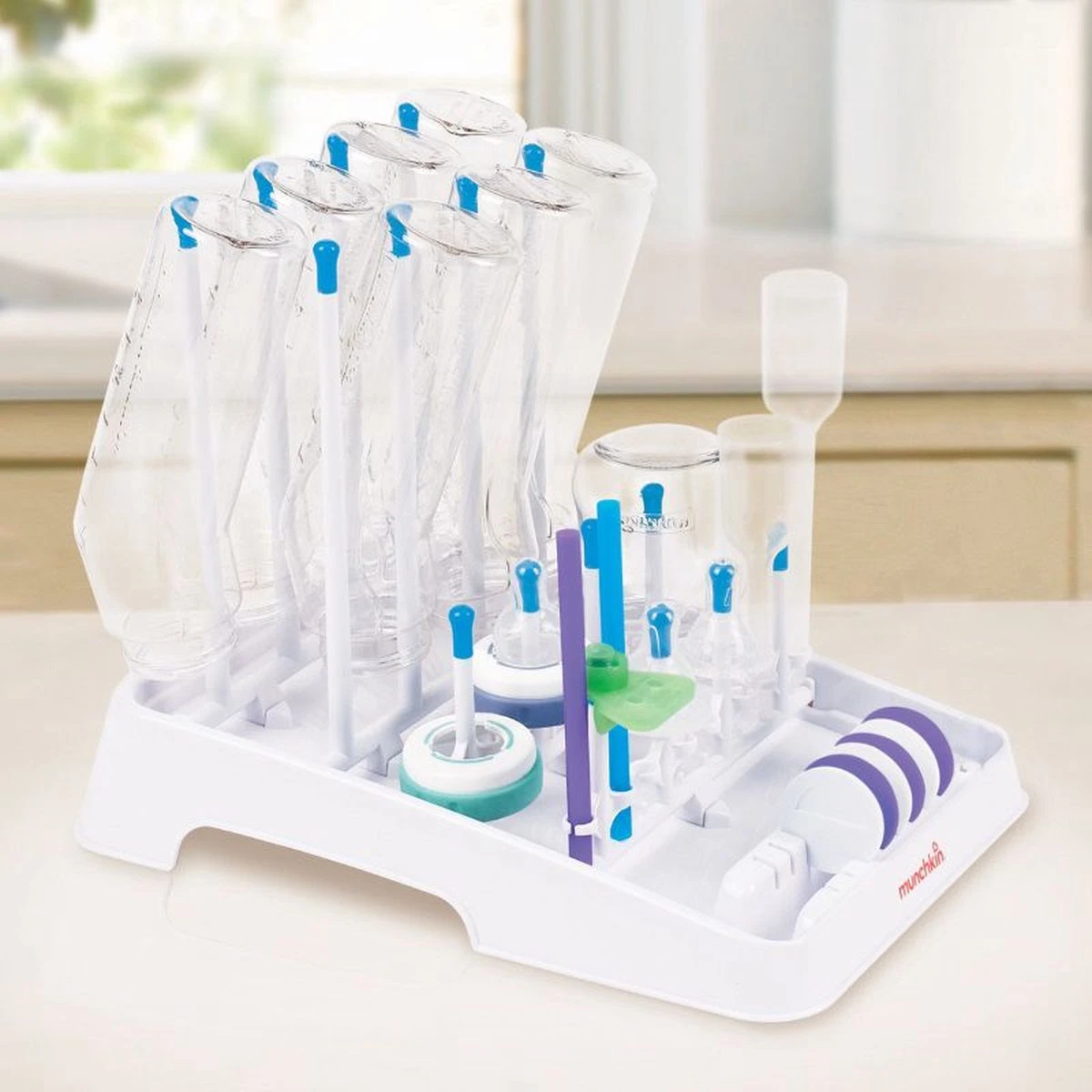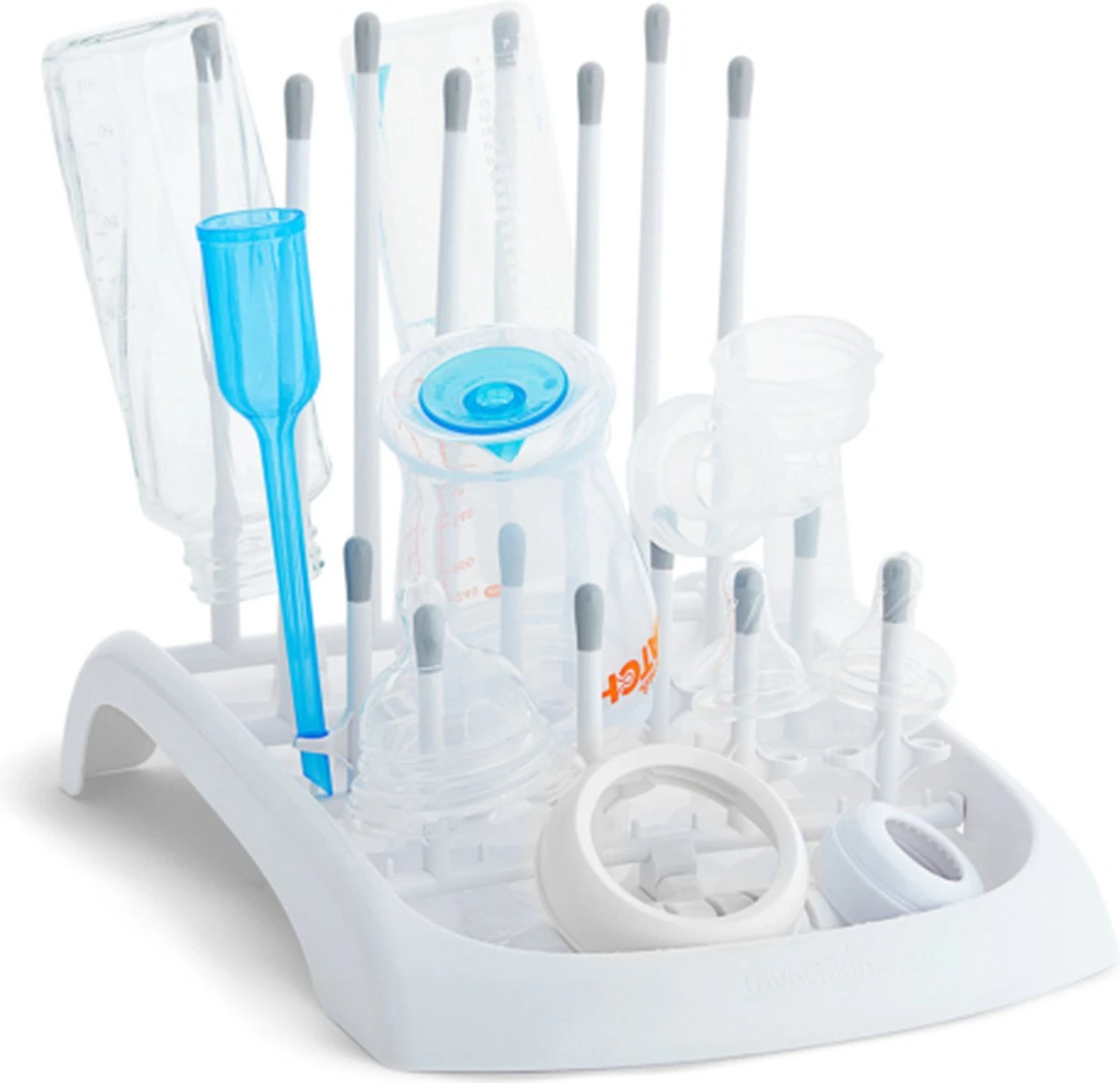 Het luxe droogrek van het merk Munchkin is een zeer handig en kwalitatief goed product. Dit flessenrek is zeer effectief en is zo ontworpen dat het aanrecht netjes droog blijft. Dit artikel is bedoeld voor baby producten, zuigflesjes dus. Het is zeer belangrijk dat het zuigflesje van een baby goed gereinigd is. Baby’s zijn klein en worden snel ziek. Doordat de flesjes goed drogen in dit rek blijven er geen resten in zitten. Dit komt de hygiëne ten goede.