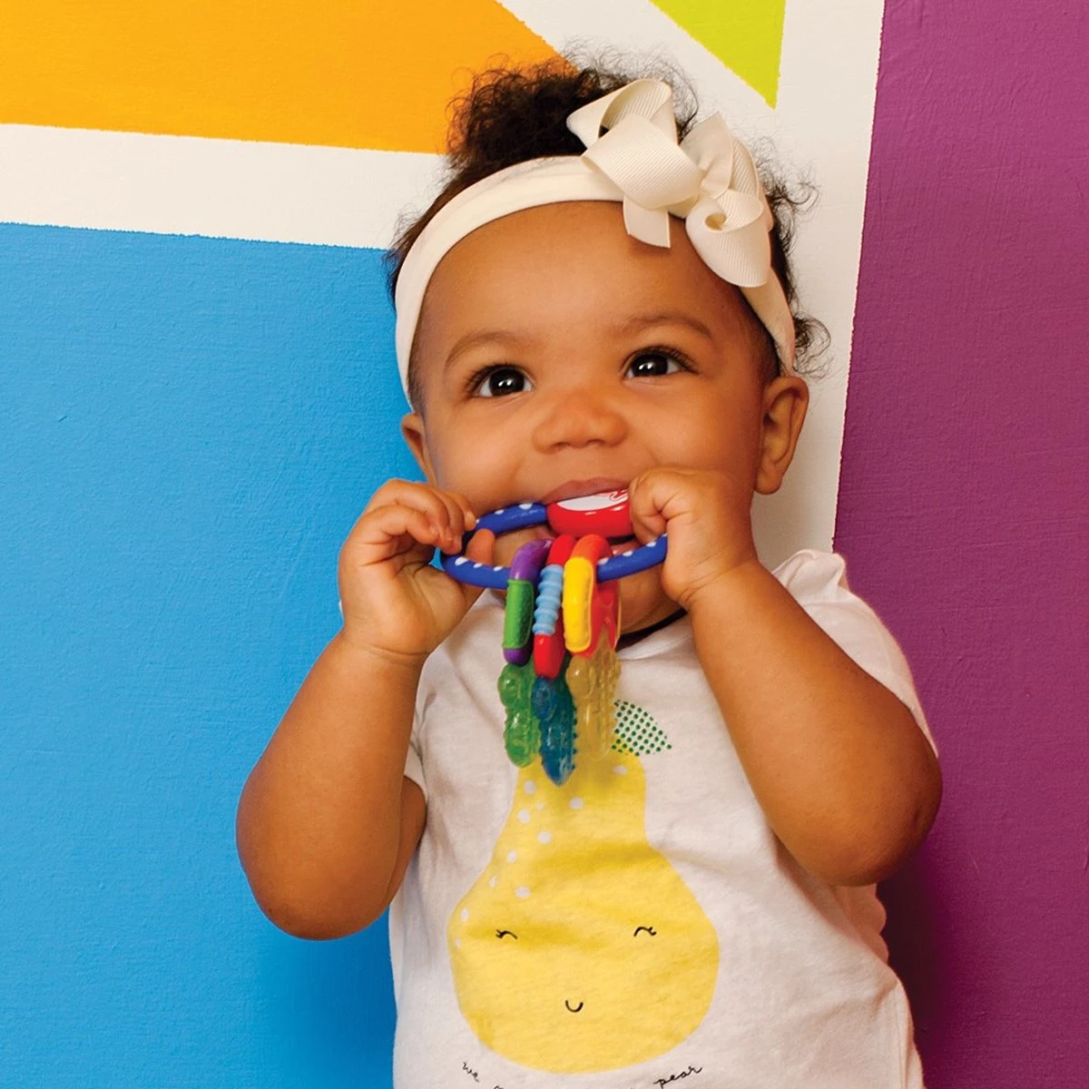 De kleurrijke koelbijtsleutels zien er leuk uit en zijn makkelijk vast te houden door kleine handen. Ze zorgen voor een zachte verkoeling dankzij de PûrICE™-gel. Hij blijft langer koud dan een traditionele bijtring gevuld met water. Leg de bijtfiguur in de koelkast, niet in het vriesvak. Het zachte materiaal van de koelbijtsleutels stimuleert de lippen en tong voor een gezonde orale ontwikkeling, terwijl de verschillende vormen en kleuren de motoriek van je baby bevorderen. Koelbijtsleutels van Nûby™ zijn geschikt voor baby’s vanaf 3 maanden.