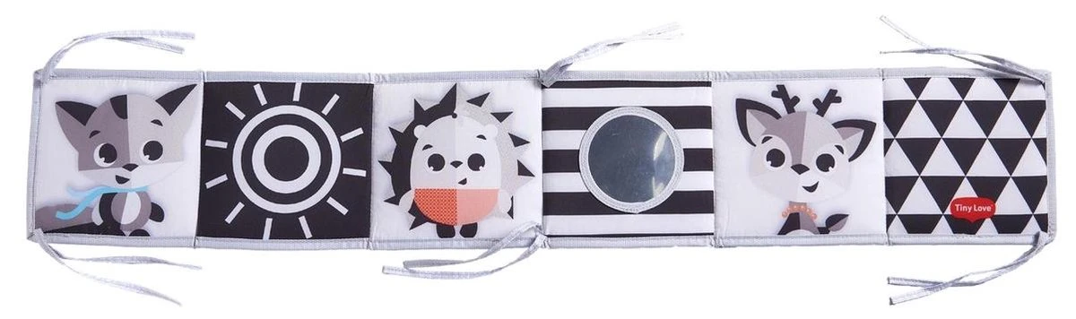 - MOEDIGT BABY’S ZICH AAN met contrasterend zwart-wit ontwerp aan de ene kant, perfect geschikt voor jongere baby’s en kleurrijk leuk ontwerp voor oudere baby’s aan de andere kant.